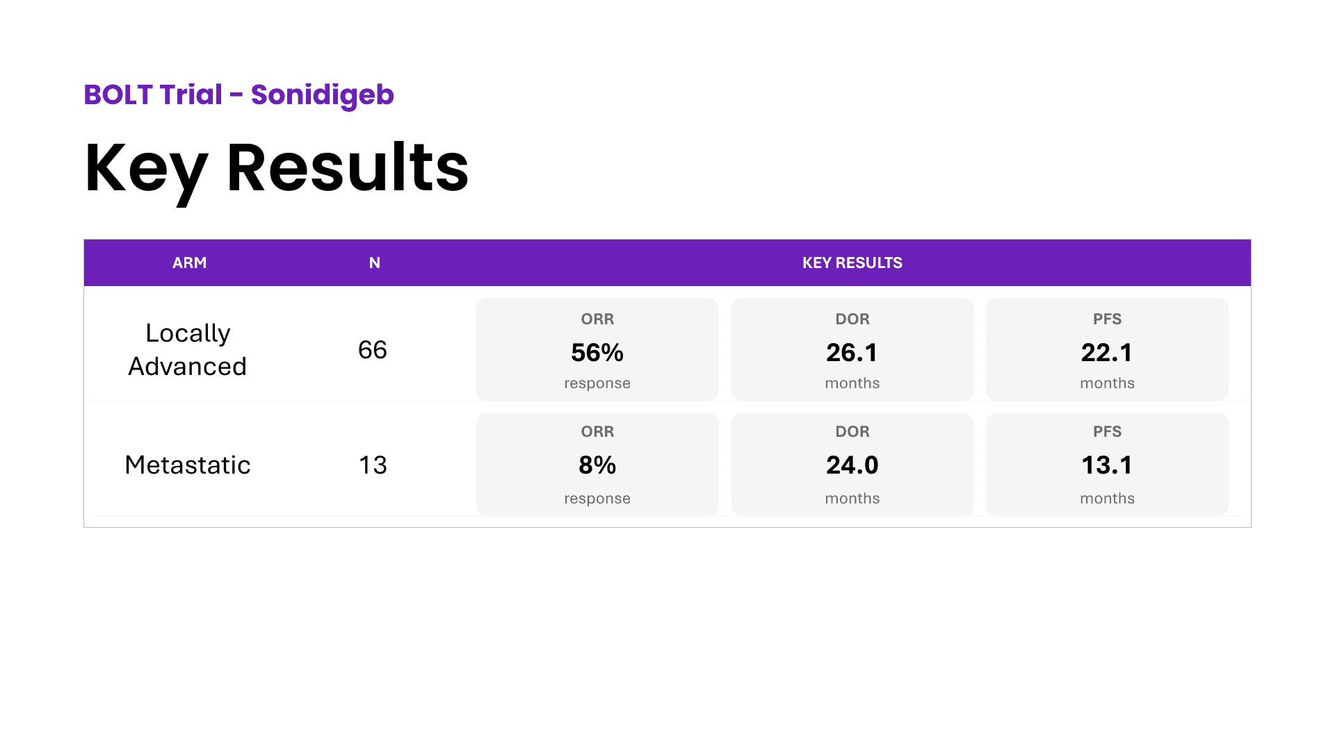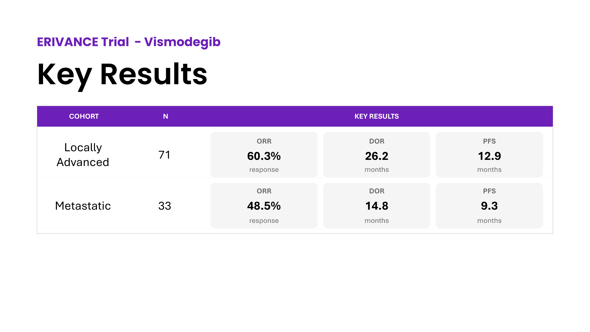 Trial results are often the centerpiece of a CME presentation. They establish why a particular treatment option is safer and more effective than the alternatives. The mistake often made, as evidenced by the slide above, is to try to provide a comprehensive account of the trial. But the audience can always look up those details later. What they need now is just a simple answer to the two questions: did it work? And was it safe? A good trial results slide should display those without unnecessary complications. And if there are two studies, why not let each have it's own slide so there's room for it and the audience to breathe. Something like this:
